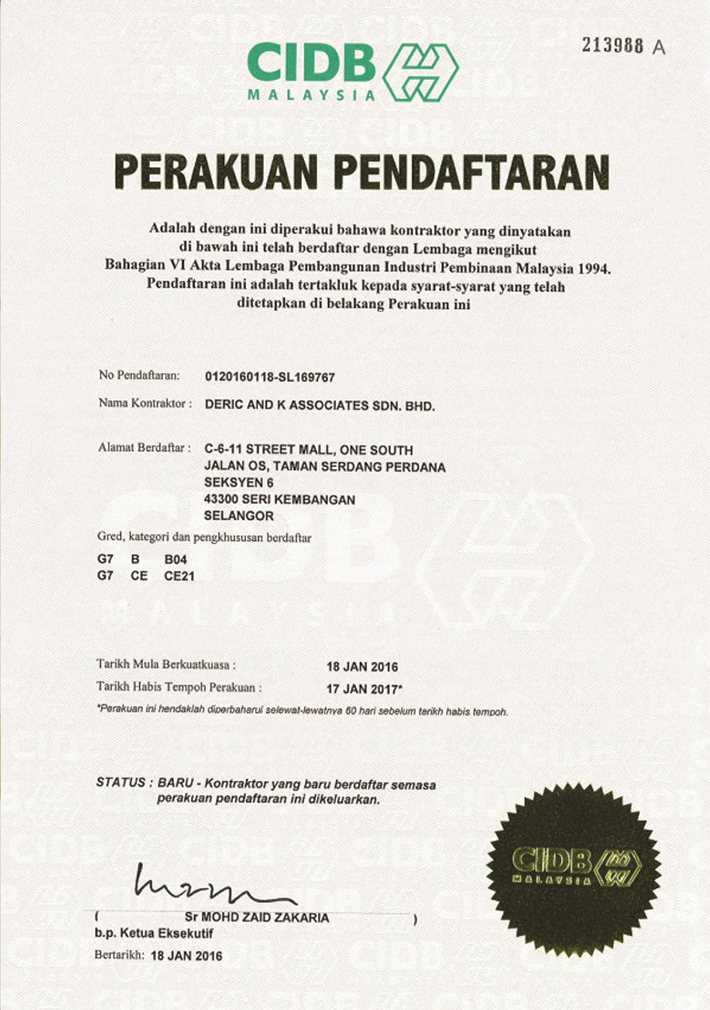 2014 - 16th of October join in to Deric and K Associates sdn bhd, My Cleanup At Stuffs (M) sdn bhd work as site supervisor (Related Architecture & ID) at Mah Sing Mr. Hong Semi-D House Project, Akisama Group Dato Lesmond Penthouse Project, D’sara Sentral sales project.