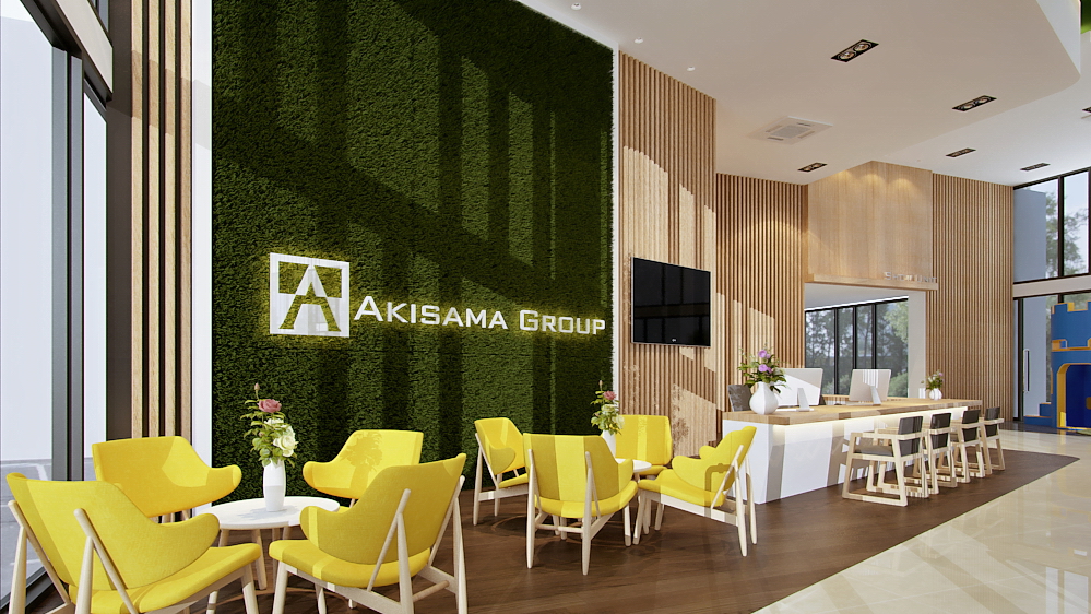An approx 9200sqft sales gallery for Akisama group in Salak Selatan. Inspired by modern contemporary, a full height of artificial green wall blend with the usage of timber stripe, natural material create a sense of calm and relaxing ambient to the space. The space was designed to exude home feeling to visitor.